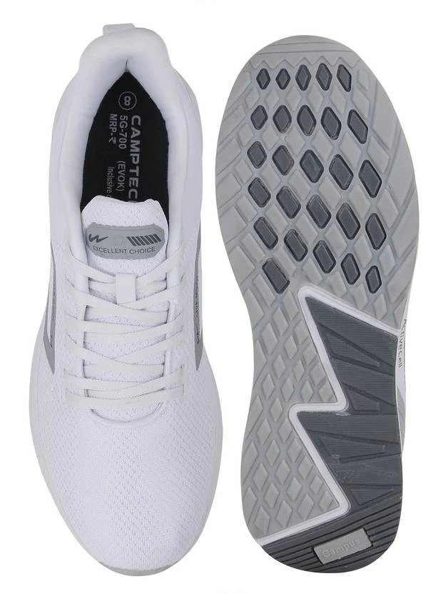 Be a part of the white sneaker trend with CAMPUS Evok White Men’s Running Shoes. Be on a college day or a day out with friends; these elegant shoes are the perfect companion no matter where you go! The feather-weight midsole takes the extra weight off the shoe, and the non-abrasive sole provides a comfortable wearing experience.