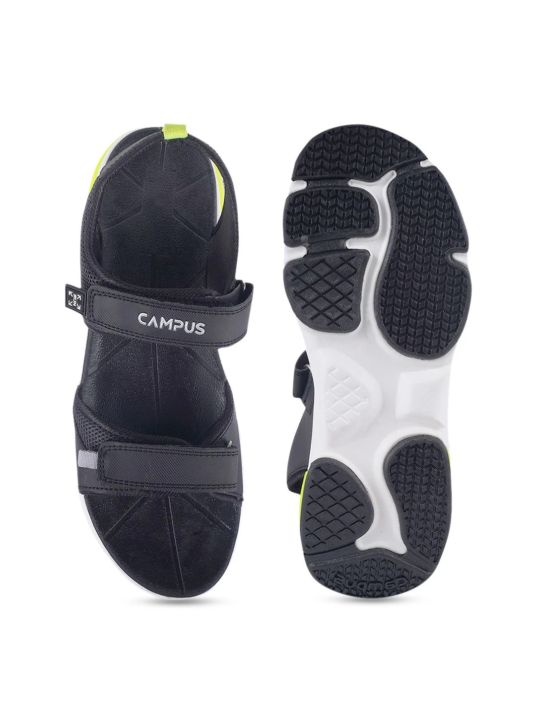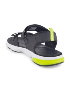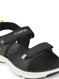 Black solid sports sandals, secured with a velcro closure