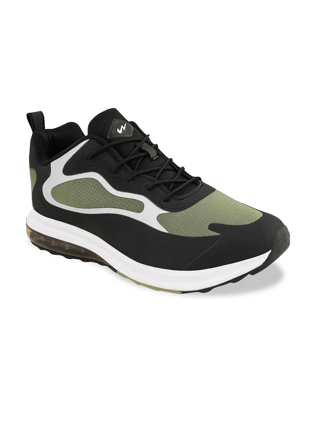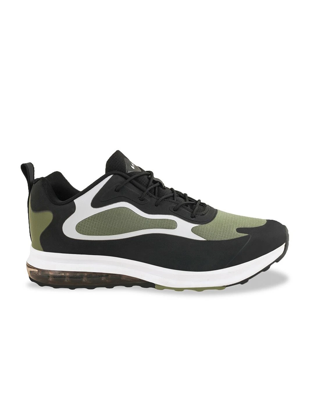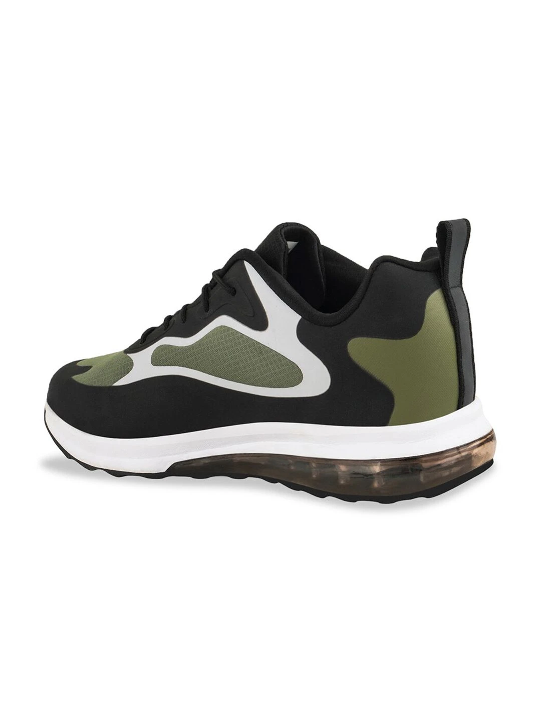 A pair of olive green,black and white sports shoes, has regular styling, lace-ups detail