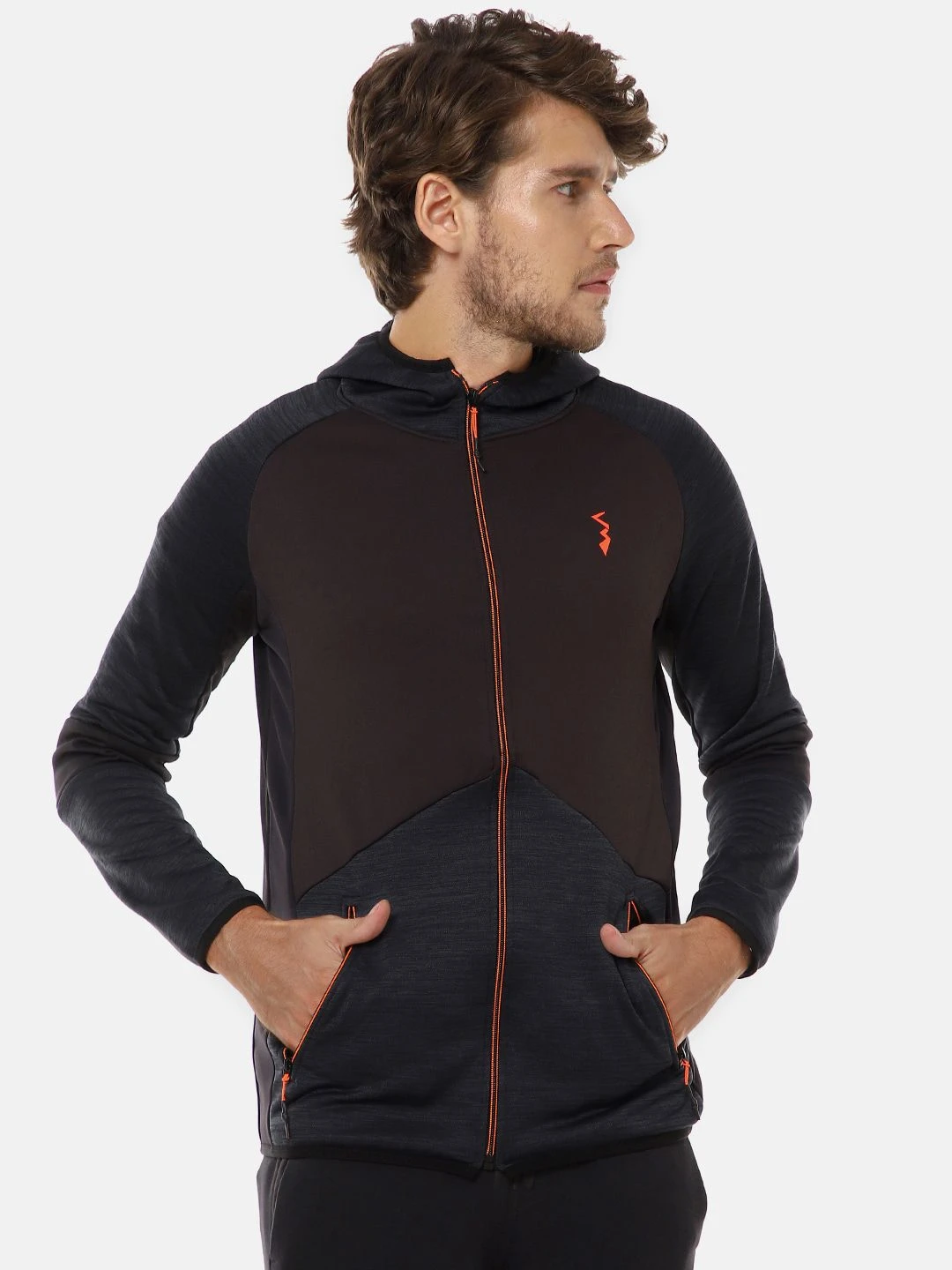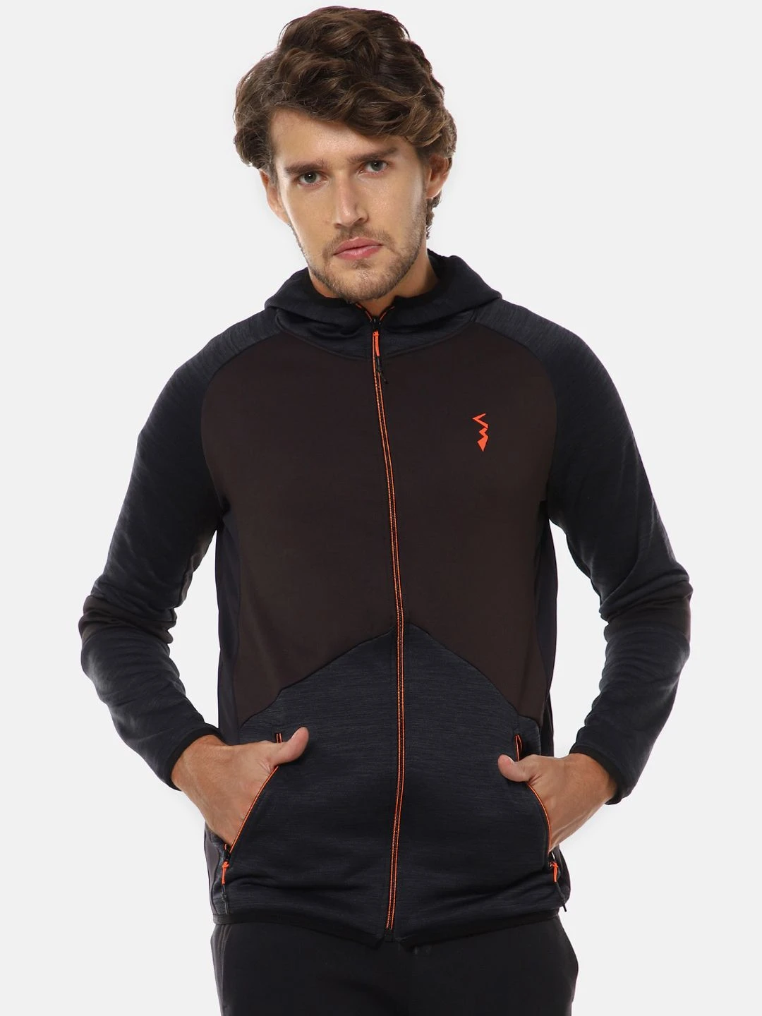 Black & brown colourblocked windcheater sporty jacket , has a hooded neck, 2 pockets ,has a zip closure, long sleeves, straight hemline & polyester liningThe model (height 6′) is wearing a size MWear this stylish streachable fast drying jackets from campus sutra. these jackets are made of micro fleence polyester fabric and designed with a hollow core inner section. It Improves the body temperature without impacting the sweat absorption property of the fabric.