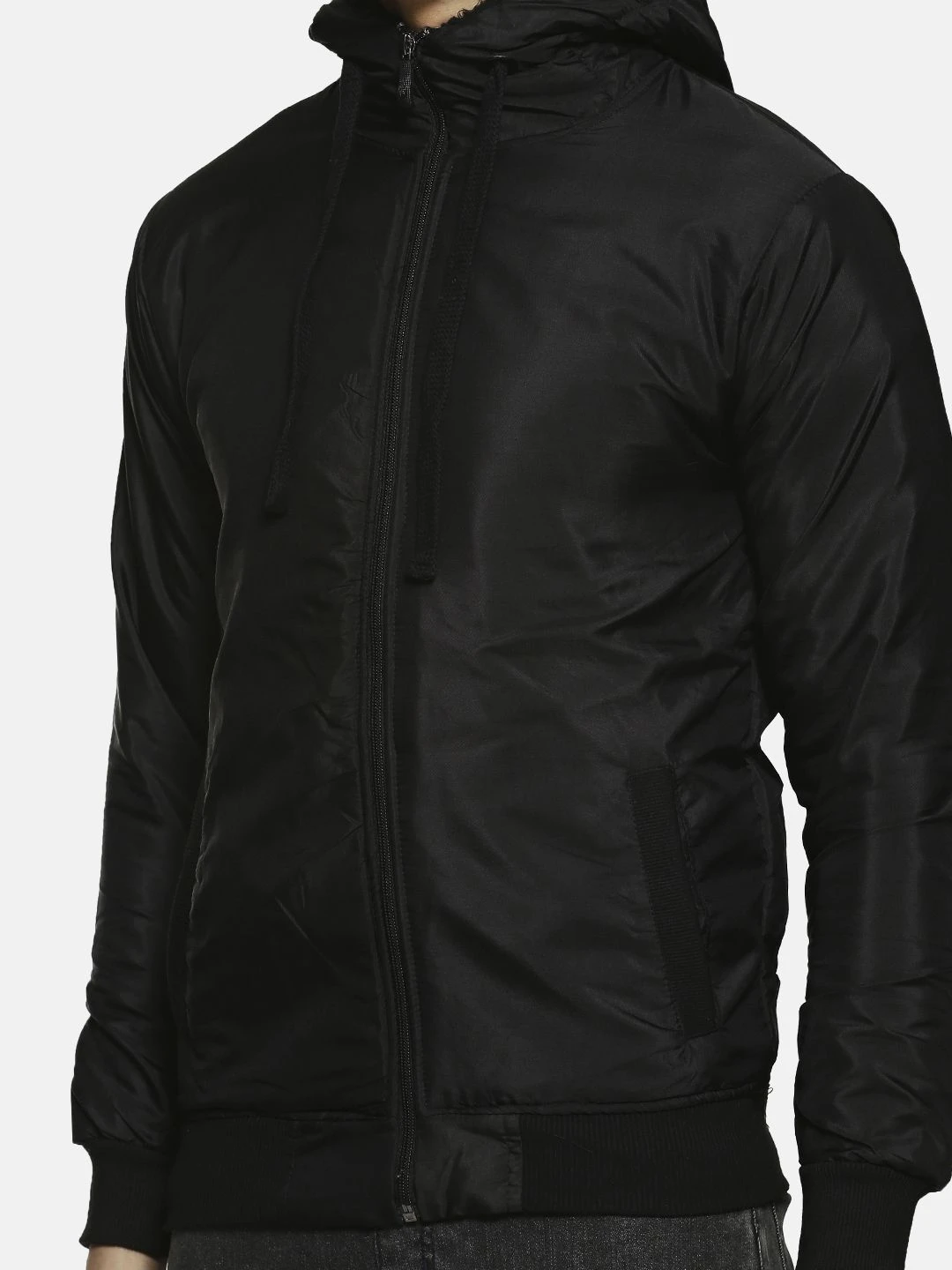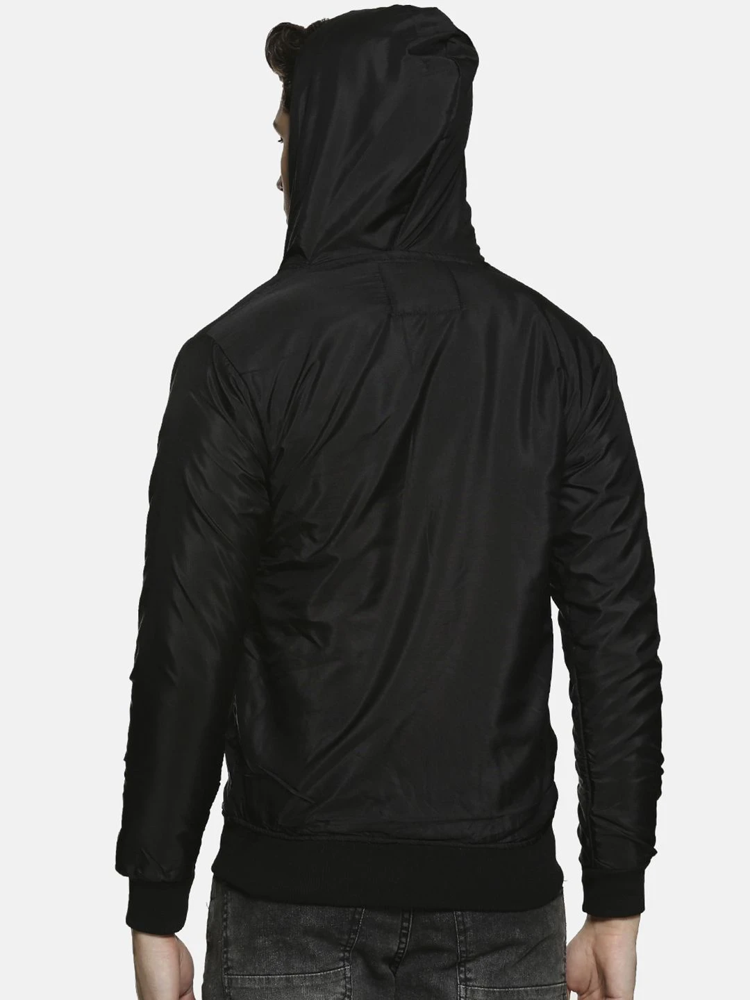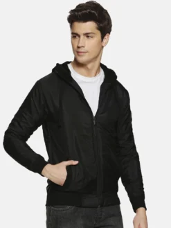 Black solid jacket, has a hooded, 2 pockets, zip closure, long sleeves, straight hem, and cottonThe model (height 6′) is wearing a size MYou’ll love the style, comfort and durability of this must-have black jacket. This Campus Sutra jacket can be styled with your favourite shirt and a pair of slim jeans for a casual date night.Nylon