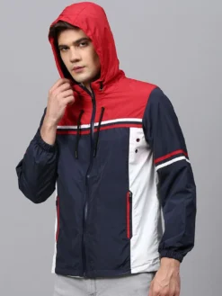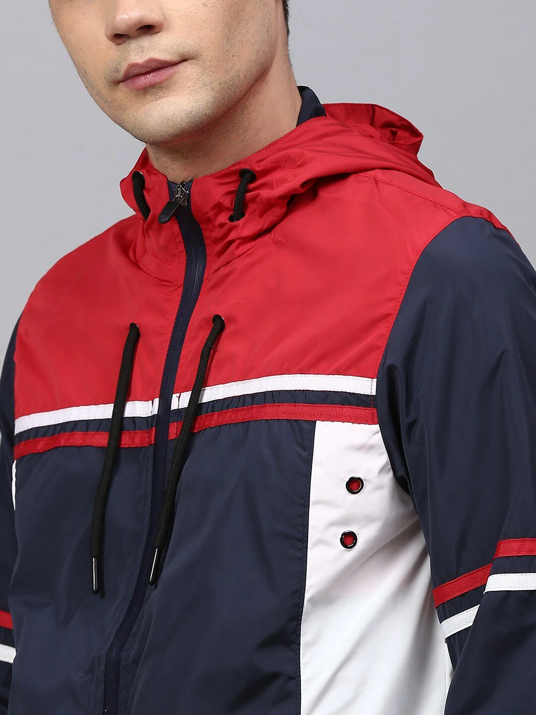Campus Sutra Men Blue & Red Colourblocked Windcheater Outdoor Sporty Jacket